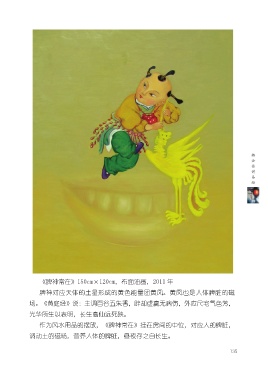 《脾神常在》150cm×120cm,布面油画,2011 年 脾神对应天体的土星形成的黄色能量团黄凤。黄凤也是人体脾脏的磁 场。《黄庭经》说:主调百谷五朱香,辟却虚赢无病伤,外应尺宅气色芳, 光华所生以表明,长生高仙远死殃。 作为风水用品的摆放,《脾神常在》挂在房间的中位,对应人的脾脏, 调动土的磁场,营养人体的脾脏,昼夜存之自长生。 135