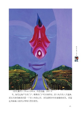 《玄牝通天》150cm×200cm,布面油画,2007 年 牝,指母也指产生的门户,修真的门户和关窍所在,进入先天的人天通道。 武则天的乾陵选的是一个女人体的山形,双乳峰和空中的抽象的双乳,那里 在向有缘人昭示女丹得大药的密窍。 65
